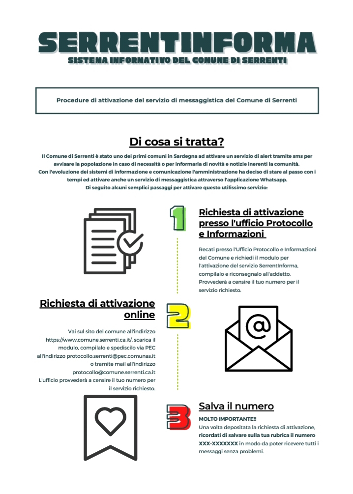 Il Comune di Serrenti comunica le modalità di attivazione del servizio di messaggistica (SMS/Whatsapp).